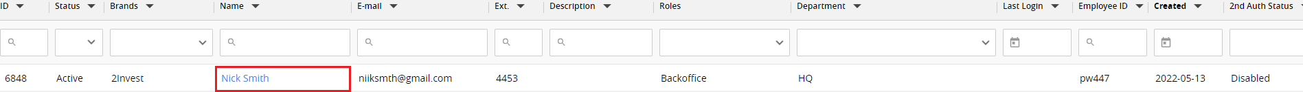 To find user account you need, use filtering and sorting tools at the top of the grid.